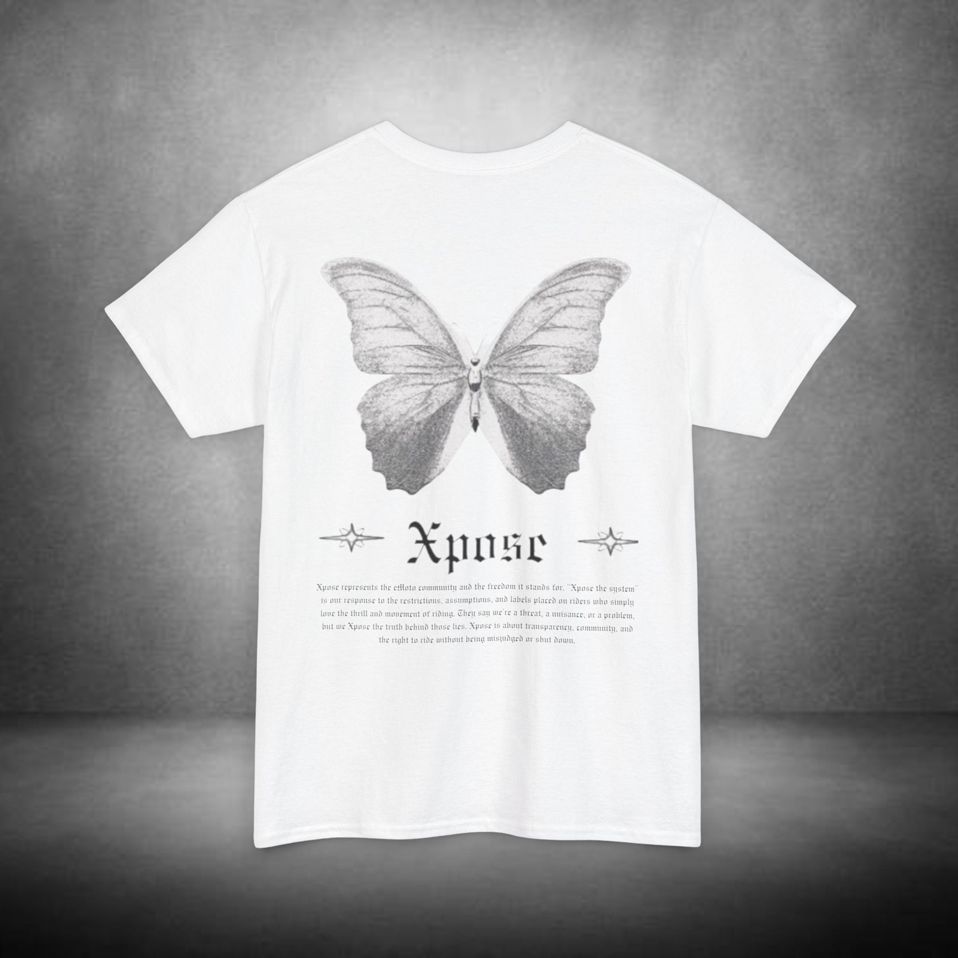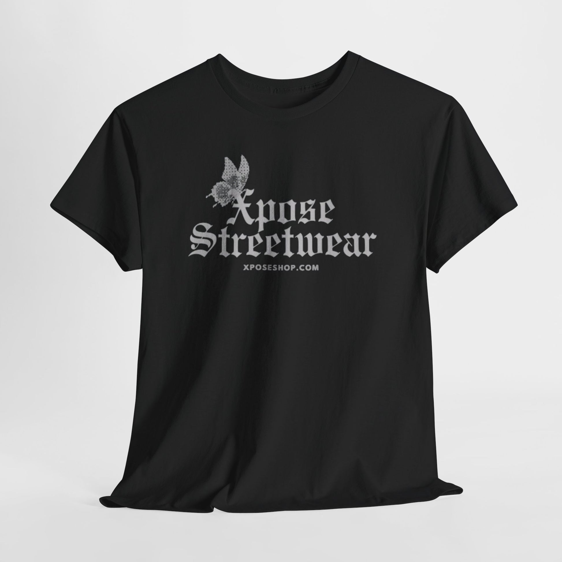 A clean, versatile white tee stamped with bold, old-English lettering and a subtle moth motif — made to sit quietly in the background while saying something confident. The front carries a compact logo that reads like a reclaimed emblem; the back stacks the brand name vertically in weathered type, giving the shirt an urban, slightly vintage edge. Lightweight but durable cotton and a classic crew cut keep the silhouette relaxed and easy to layer. Wear it with worn denim, an overshirt, or under a leather jacket to bring a low-key, streetwise attitude to weekday routines or late-night hangs.
